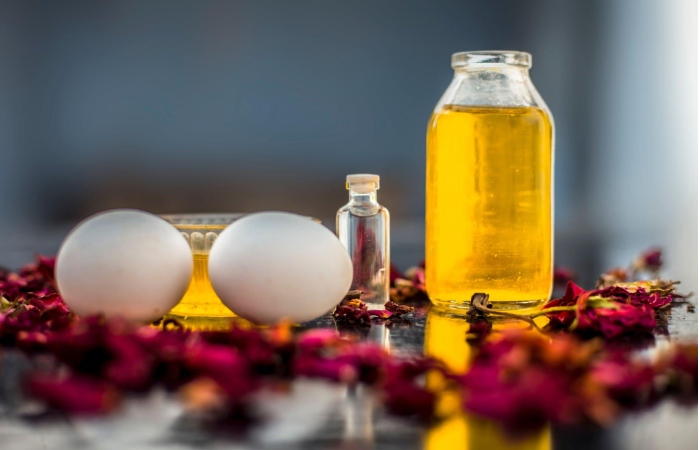 Coconut Oil: Known as a powerhouse of proteins, minerals, and essential fats, coconut oil controls hair fall, reduces hair breakage, and promotes growth. Coconut oil also contains potassium, which promotes hair growth. It helps moisturize and strengthen your hair, leaving it shiny and healthy. In addition, the oil is loaded with proteins and essential fats, which help promote hair growth and prevent hair loss. It is considered one of the best and simplest natural remedies to make your hair longer, thicker, and able to grow faster.